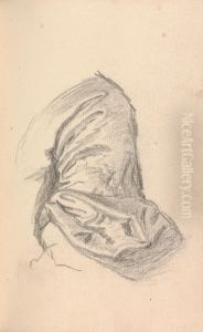 Portrait Of A Lady, Half-length, In A Blue And White Dress And Green Wrap