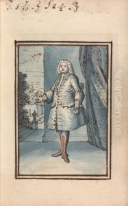 Portrait Of A Man (john Wogan?) Wearing A Blue Coat With Gold Toggles And A White Lace Collar