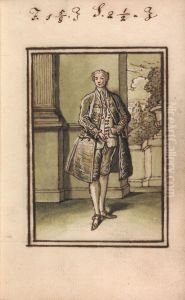 Portrait Of A Gentleman Standing Three-quarter Length, Wearing A White Satin Coat, And White Lace Ruff Before A