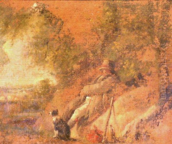A Hunter Resting With His Dog In A Landscape