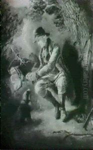 Travelling Boys With Performing Mice, In A Landscape