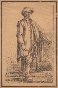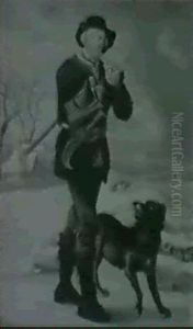 Basket Weaver And Dog In Landscape