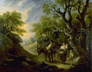 Bauernkinder Mit Einer Reisigfuhre Vor Einer Waldhutte