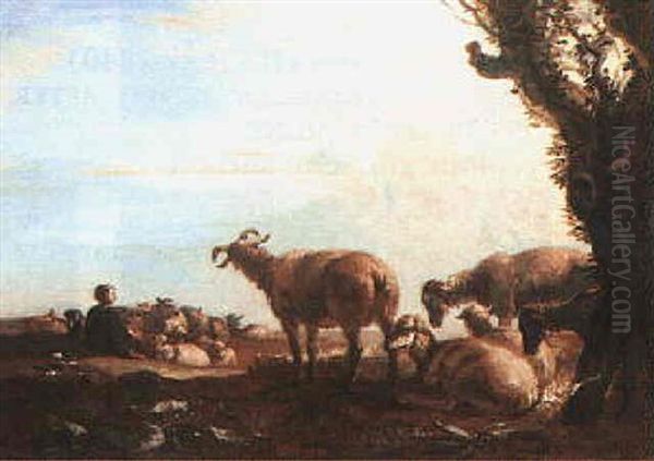 Shepherd Boy Resting With His Herd