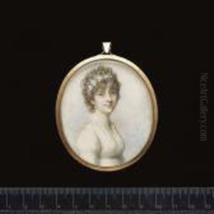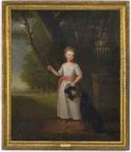 A Portrait Of A Lady In A White Dress With A Pink Sash By A Balustrade
