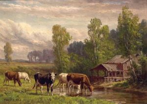 In The Afternoon Sunshine (pastoral Scene With Cows)