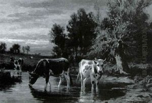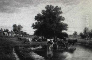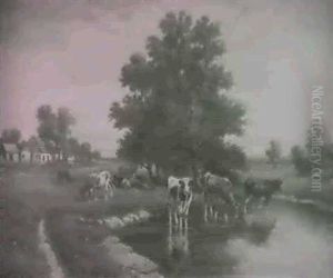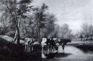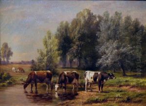 Three Cows In A Landscape Watering
