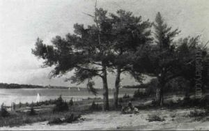 Figures Ashore Watching The Sailboat