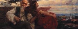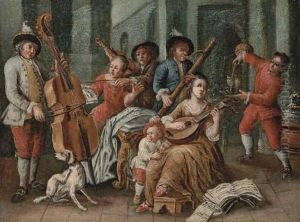 Classical Figures Conversing And Playing Music Beneath A Triumphal Arch