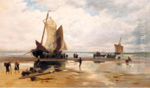 Dutch Fisherfolk Unloading The Day's Catch Onto The Beach At Scheveningen