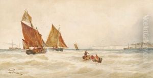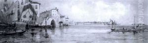 Bragozzi On The Venetian Lagoon With Santa Maria Della Salute Observed Beyond