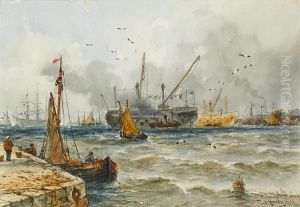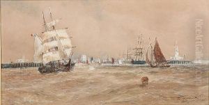 Harbour Scene With Shipping In A Stiff Breeze