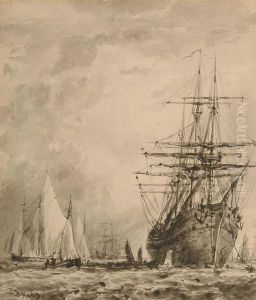 A Trading Brig And Other Shipping In The Channel Off Dover