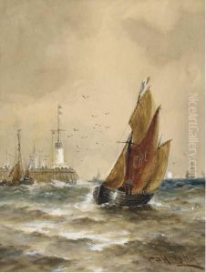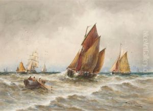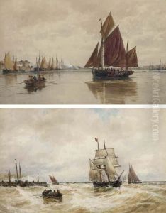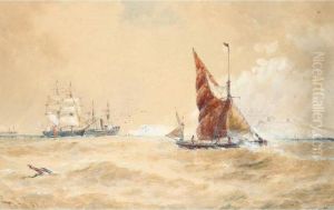 A Trading Brig, Steamer And Other Shipping In Coastal Waters