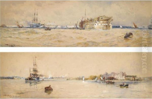 A Training Hulk On The Medway; Upnor Castle On The Medway