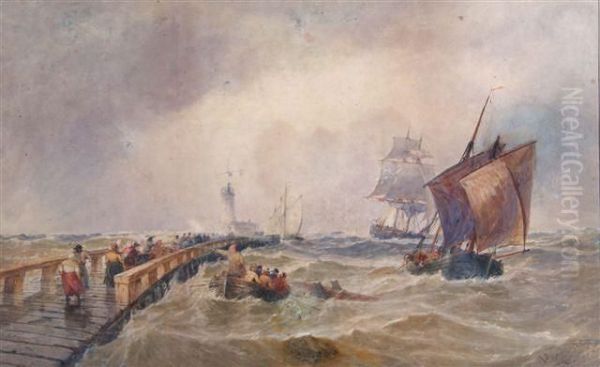 Boulogne Pier Oil Painting by Thomas Bush Hardy