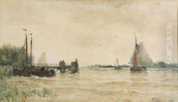 Yachts On The Water With Figures On The Stockade