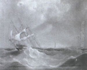A Seventy-four Gun Third Rate Weaving Her Way Through Smaller Craft As She Enters Gibraltar (+ Two Frigates Caught In Heavy Seas, The Larger On A Collision Course With An On-coming Two-decker; Pair)