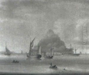 An English Frigate And An Armed Naval Cutter Becalmed In The Tagus Off The Belem Tower