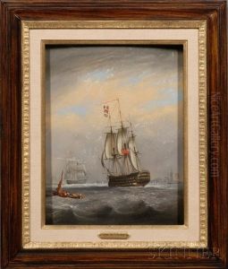 A Seventy-four Gun Third Rate Weaving Her Way Through Smaller Craft As She Enters Gibraltar (+ Two Frigates Caught In Heavy Seas, The Larger On A Collision Course With An On-coming Two-decker; Pair)