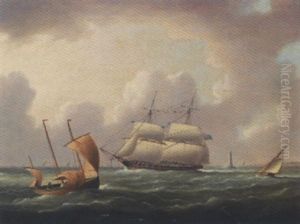 A Royal Naval First Rate Heeling In The Wind Off The Eddystone Lighthouse