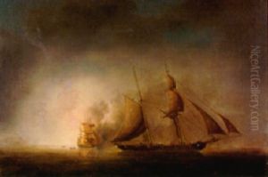 The Pirate Lugger "will Watch" Being Pursued By An English Gun Brig At Night