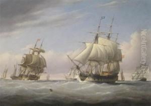 British Men Of War Under Way In The Straits Of Messina