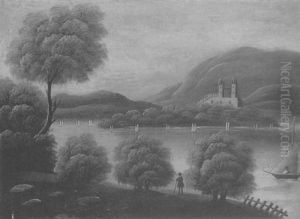 River Valley With Fishermen, Cottages And Distant Castle