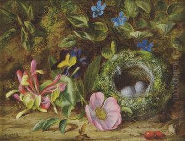 A Naturalistic Still Life With Birds Nest And Wildflowers