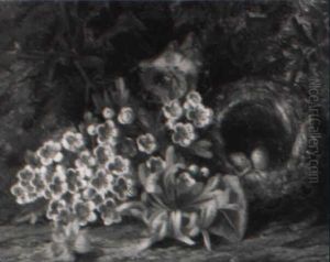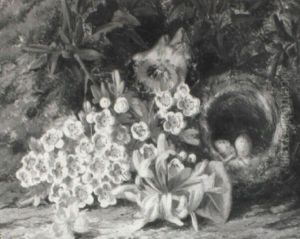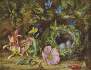 A Still Life With Bird's Nest And Flowers