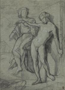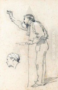 Study Of A Standing Man Seen From The Side With One Arm Raised, And Another Study Of A Male Head