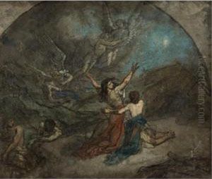 A Sketch Of The Virgin And Child Surrounded By Angels