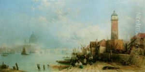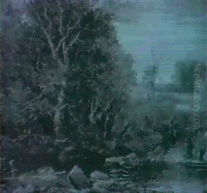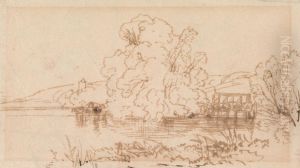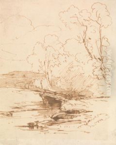 A River Landscape With An Angler By A Bridge With Cattle On A Bank