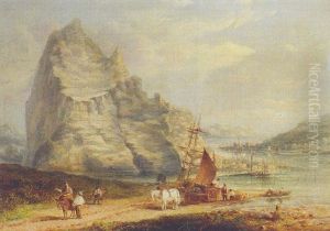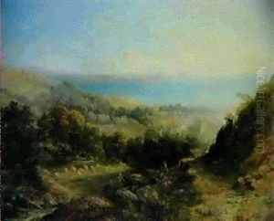 Figures Resting On A Country Path, An Extensive Mountainous Landscape Beyond