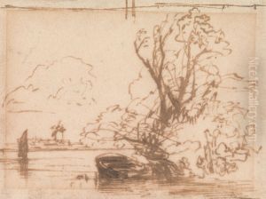 A River Landscape With A Figure In A Punt, A Castle Ruin Beyond