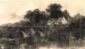 A River Landscape With An Angler By A Bridge With Cattle On A Bank