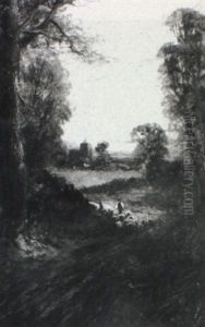 Wooded Landscape With Children Playing In The Lane