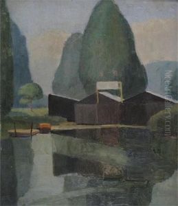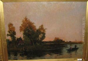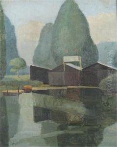 A River Landscape With A Boathouse