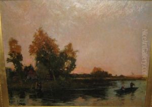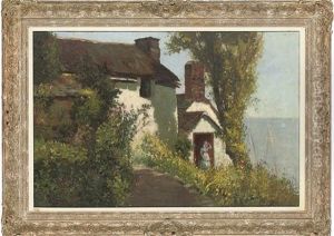 Figures By A Cottage Near The Lake