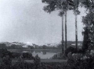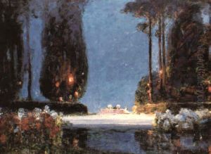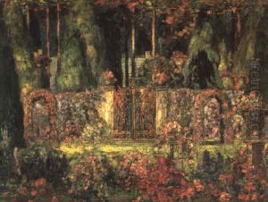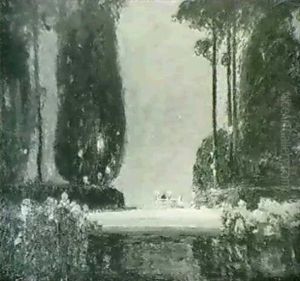 Figures In An Ornamental Garden, A Capriccio View Of Venice Beyond