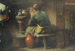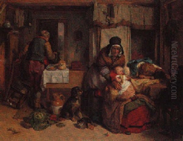 Cottage Interior Oil Painting by Thomas Faed