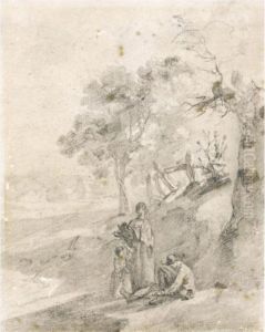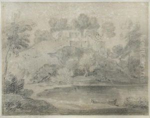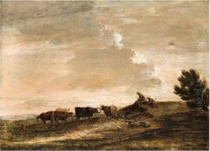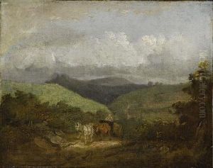 Wooded Landscape With Herdsman And Cattle, A Building Beyond To The Right