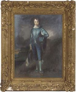 Portrait Of A Lady (mrs. William Talbot Baker?), Three-quarter-length, In A Blue Dress And Pearl Choker