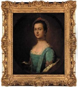 Portrait Of A Lady In A Blue Dress With White Fichu, Half-length, In A Painted Oval