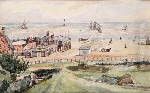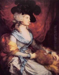 Portrait Of A Lady, Half Length, In A White Dress With Blue Sash And A Hat