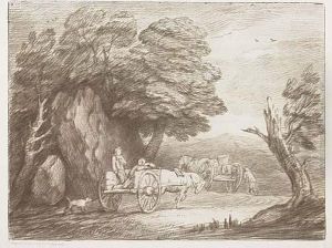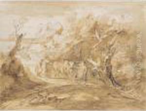 Wooded Landscape With Peasants And Donkey Round A Fire, Figures And Distant Church (the Gypsies)