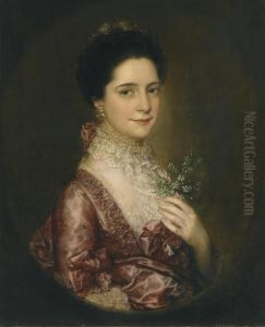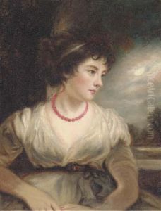 Portrait Of A Lady, Half-length, In A Red Wrap, A Landscapebeyond