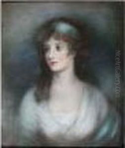 Portrait Of A Young Lady, Bust Length, Wearing White Dress, Blue Shawl And Blue Ribbon In Her Hair