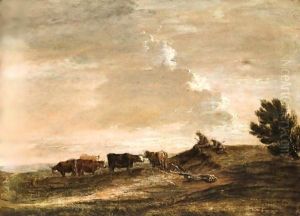 A Wooded Landscape With A Peasant, A Horse And Cattle