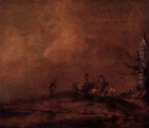 Wooded Landscape With Peasants And Donkey Round A Fire, Figures And Distant Church (the Gypsies)